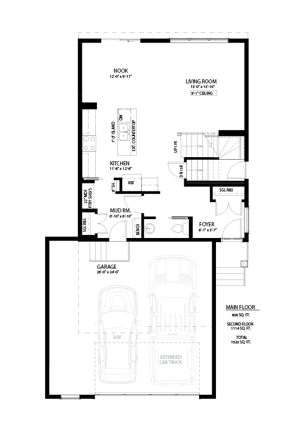 • Total: 1,920 sq. ft. (Main Floor: 806 sq. ft. | Second Floor: 1,101 sq. ft.)